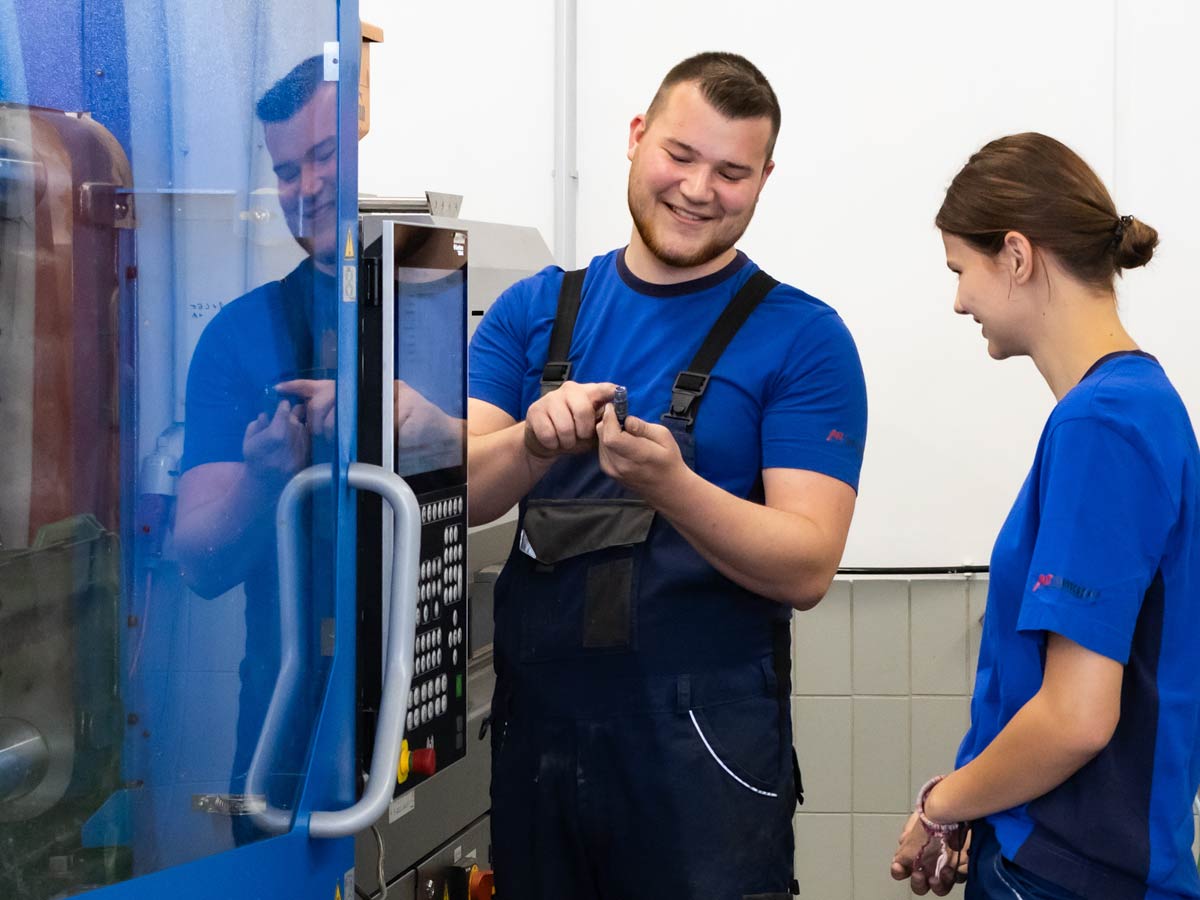 Fort- und Weiterbildung hat überhaupt einen hohen Stellenwert bei uns. Durch jährliche Inhouse-Schulungen, Kompaktkurse bei unseren Maschinenherstellern, Kurse beim örtlichen Weiterbildungszentrum SAZ und durch Grund- und Aufbaukurse zum Thema Spritzgießen von Thermoplastwerkstoffen sind unsere Mitarbeiter technisch stets up to date. Die Ausbildung für den Gabelstaplerschein fördern wir ebenfalls.